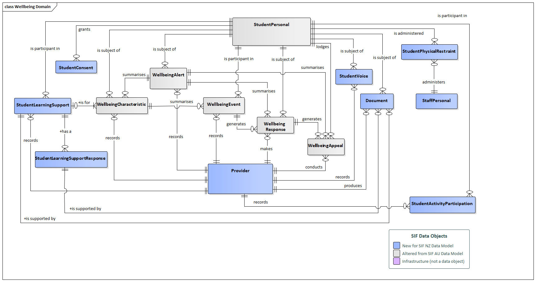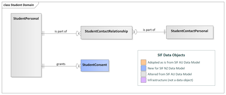The Student domain describes Student entities, their Whānau, and the relationships between them.